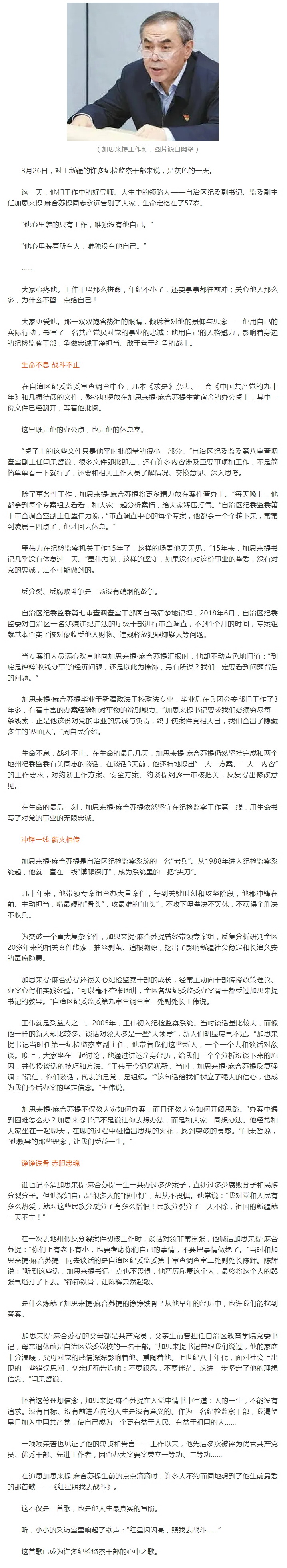 【全國(guó)優(yōu)秀共產(chǎn)黨員先進(jìn)事跡七】用生命書寫忠誠(chéng)——追記自治區(qū)紀(jì)委副書記、監(jiān)委副主任加思來(lái)提·麻合蘇提同志