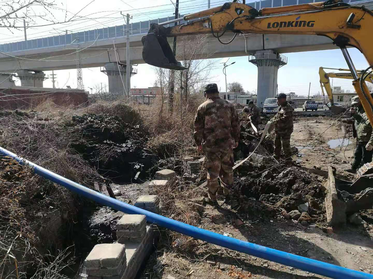 3月23日,錦州北站朝凌高鐵錦州段原供水管線改造工程正式施工。工程公司施工人員分別廢除了許屯村和阜錦公路阜凌高鐵保護區(qū)內(nèi)的原PE供水管線和球墨供水管線,并各新建一條穿越管涵的供水管線。華潤DN1000供水原管線為PCCP管材,施工開挖中遇到大量地下水,是本次改造中的重點和難點。截止目前,工程公司已完成敷設(shè)許屯村DN110PE管線560米(包括穿越管涵72米);安裝DN200臨時管線80米;澆筑DN325管涵內(nèi)混凝土墊層55米。