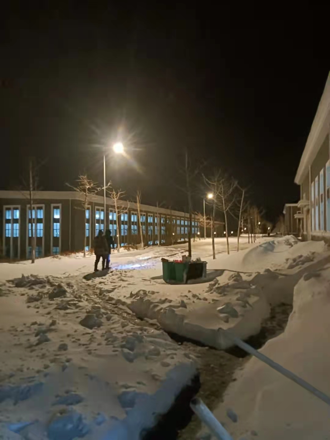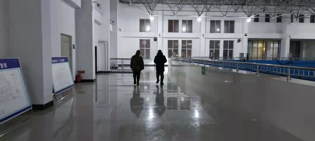 時至7日中午,廠區(qū)平均降雪量已達(dá)二十厘米,為了避免突發(fā)情況,在崗人員自覺排班分組,加強(qiáng)廠區(qū)設(shè)備、構(gòu)筑物的巡視,排查安全隱患,并將前后加氯管線纏繞伴熱帶,各個池渠、水泵等設(shè)備放空排水,車間門窗、洞口、井室加裝防凍門簾等,盡可能地做好防凍保溫措施。7日晚,雪還在不停的下,一層更比一層厚,凈水廠所有在崗人員主動提出連班參與這場與冰雪的較量賽。夜靜更深,取水和凈水值班室的燈火通宵達(dá)旦,整個廠區(qū)徹夜都是值班人員忙碌的身影。